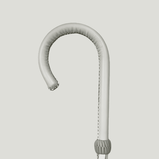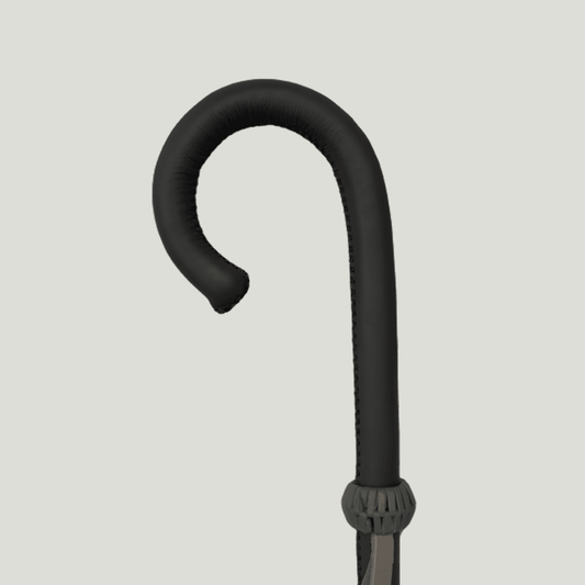 Bastón Bamboo con Detalle de Cuero Gris con Virola Metalica